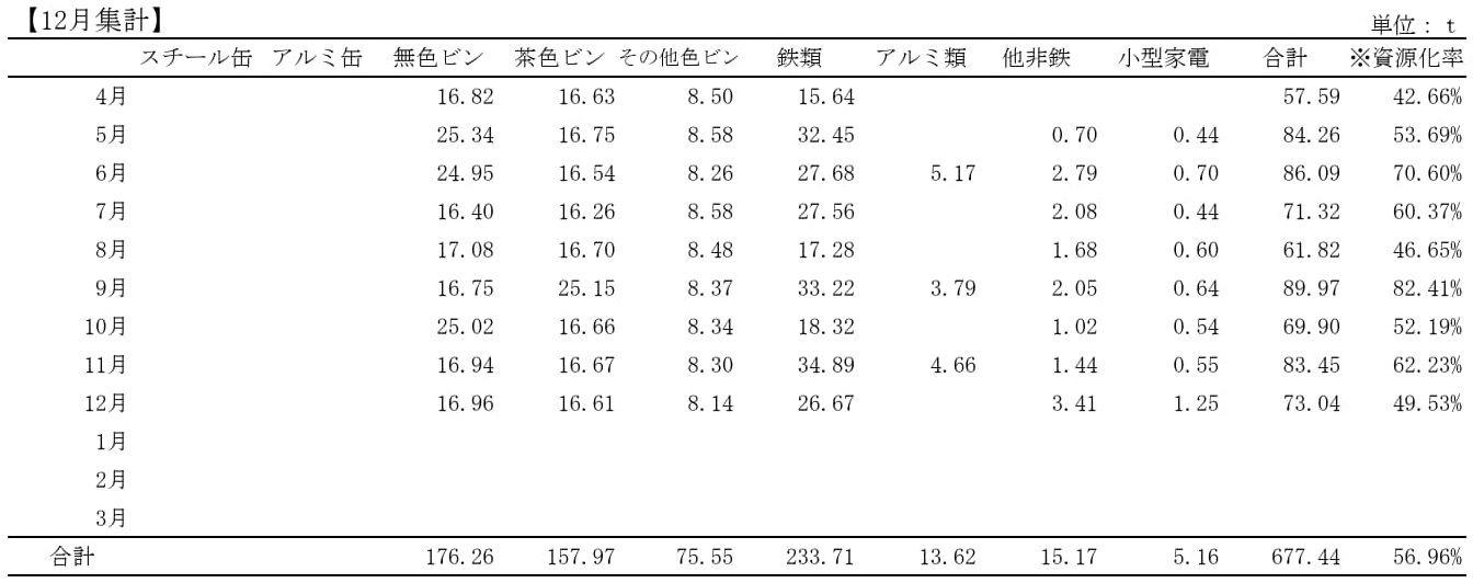 ※その他ビン、小型家電については外部搬出先にて資源化。